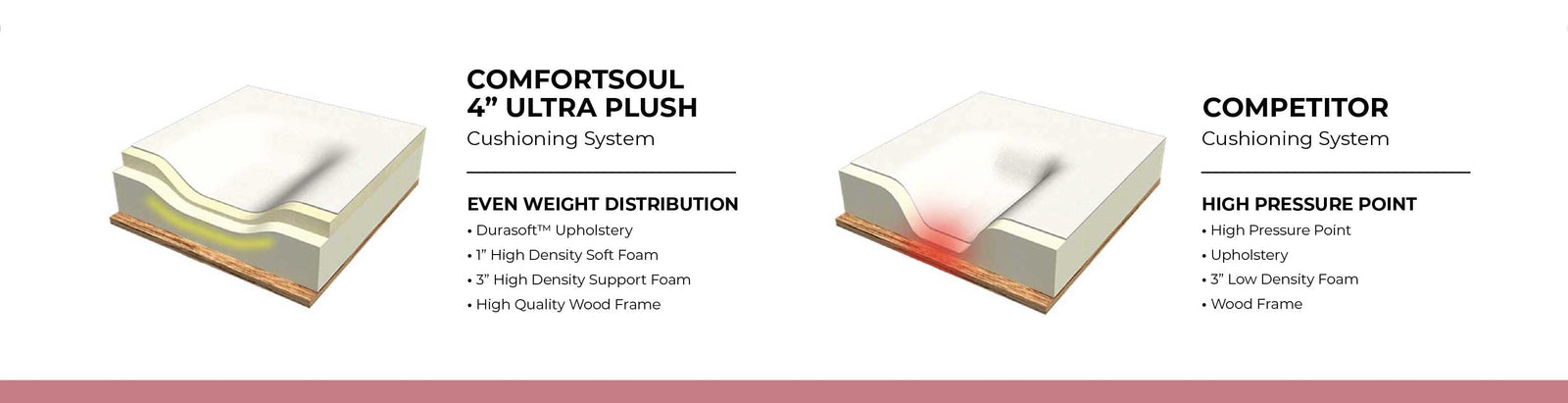ComfortSoul's cushioning system offers superior comfort for your clients by offering thicker foam support, high-quality wood frames, and the thickest, softest, most ergonomic padding with Durasoft™ Upholstery.